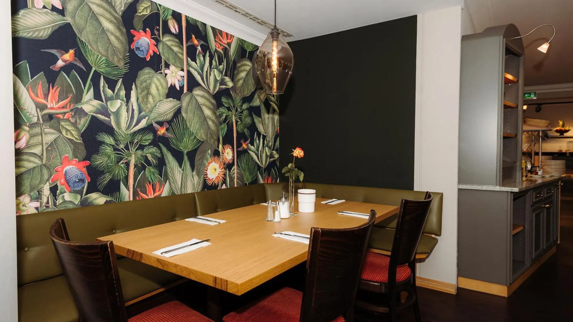 Jeden Morgen wird ein Frühstück im Restaurant serviert. Es gibt eine Lounge- Bar, die mit einem offenen Kamin ausgestattet ist. Es sind nur 5 Minuten zum Restaurant Burger King, oder Sie können im Restaurant Krambambuli Restaurant essen, das etwa 50 Meter von hier entfernt liegt.